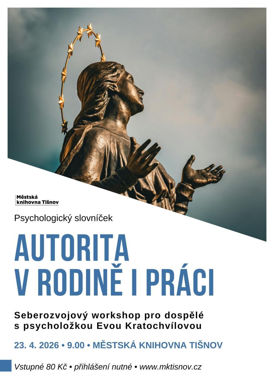 9:00 - 10:00 workshop Městská knihovna Tišnov 80,- Kč - Seberozvojový workshop pro dospělé s psycholožkou Evou Kratochvílovou Jak rozumíte pojmům žárlivost, prokrastinace, sebeúcta, osobní hranice nebo třeba empatie? Zveme vás k posezení nad oblíbenými psychologickými termíny, které stojí za to si objasnit.