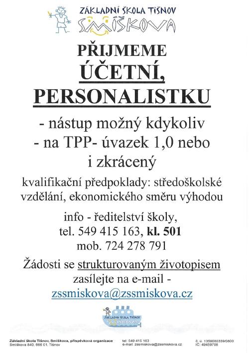 | Práci nabízí: | Základní škola Tišnov, Smíškova, přísp. organ. |