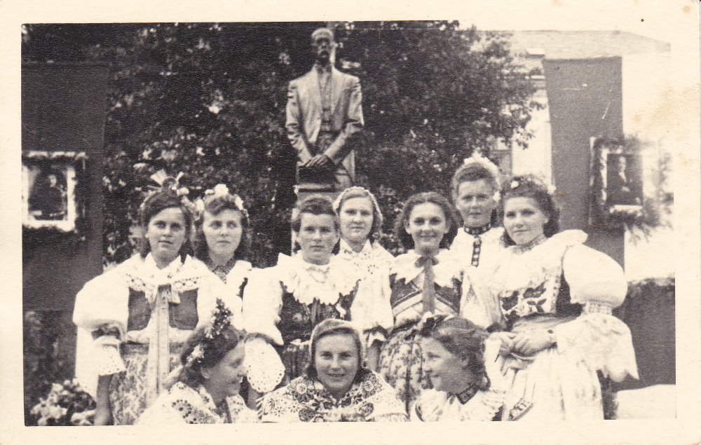 Dívky v krojích při prvním odhalení sochy TGM v Rudici