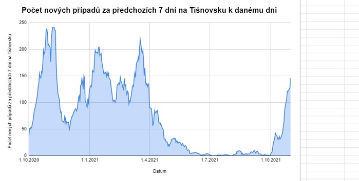 Na Tišnovsku strmě roste počet nových případů onemocnění Covid-19 za posledních 7 dní. Ještě v polovině října bylo v obcích na Tišnovsku dohromady zaznamenáno 31 nových případů za poslední týden, k 31. říjnu už to bylo 146 nových případů za předchozích 7 dní. Situace tak začíná připomínat začátek loňské podzimní vlny.
